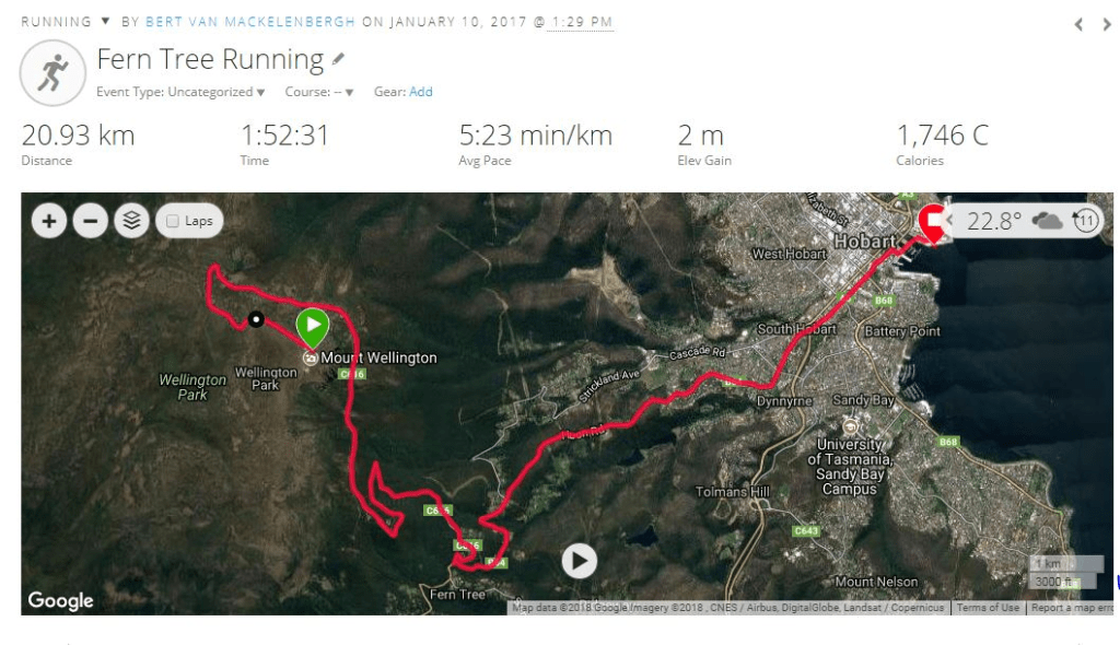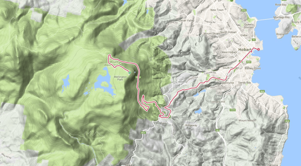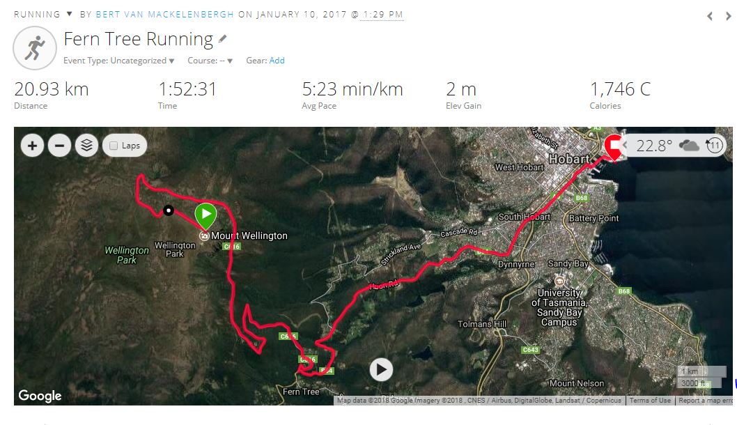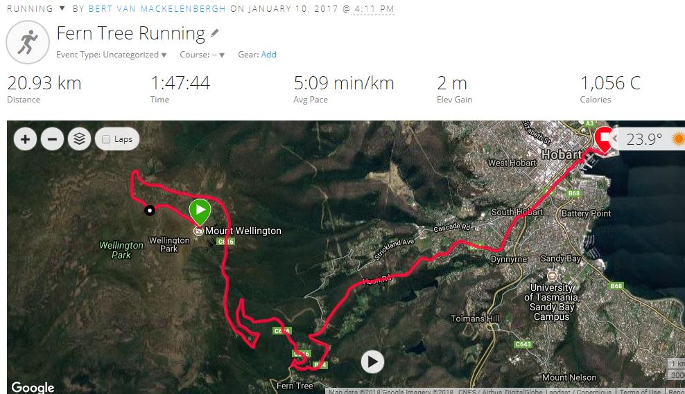 Maasdam running club presents the wooden shoe challenge; Running down the half marathon from Mount Wellington in Hobart, finish, go up and run it again