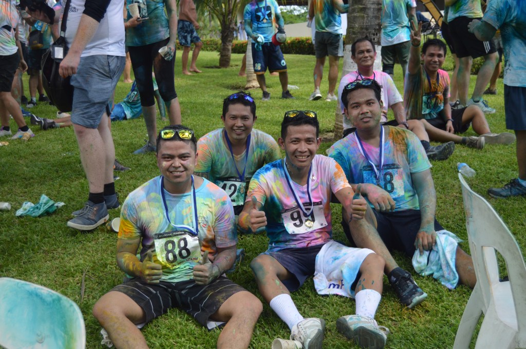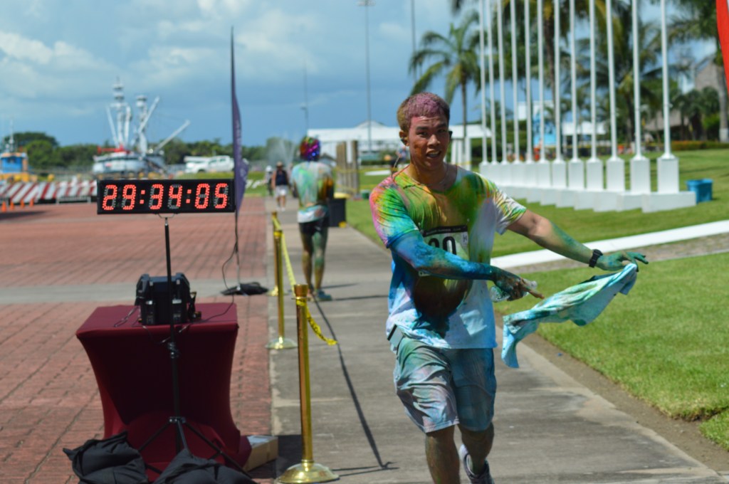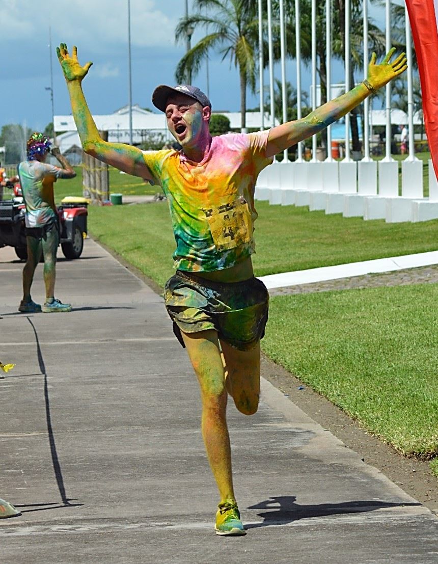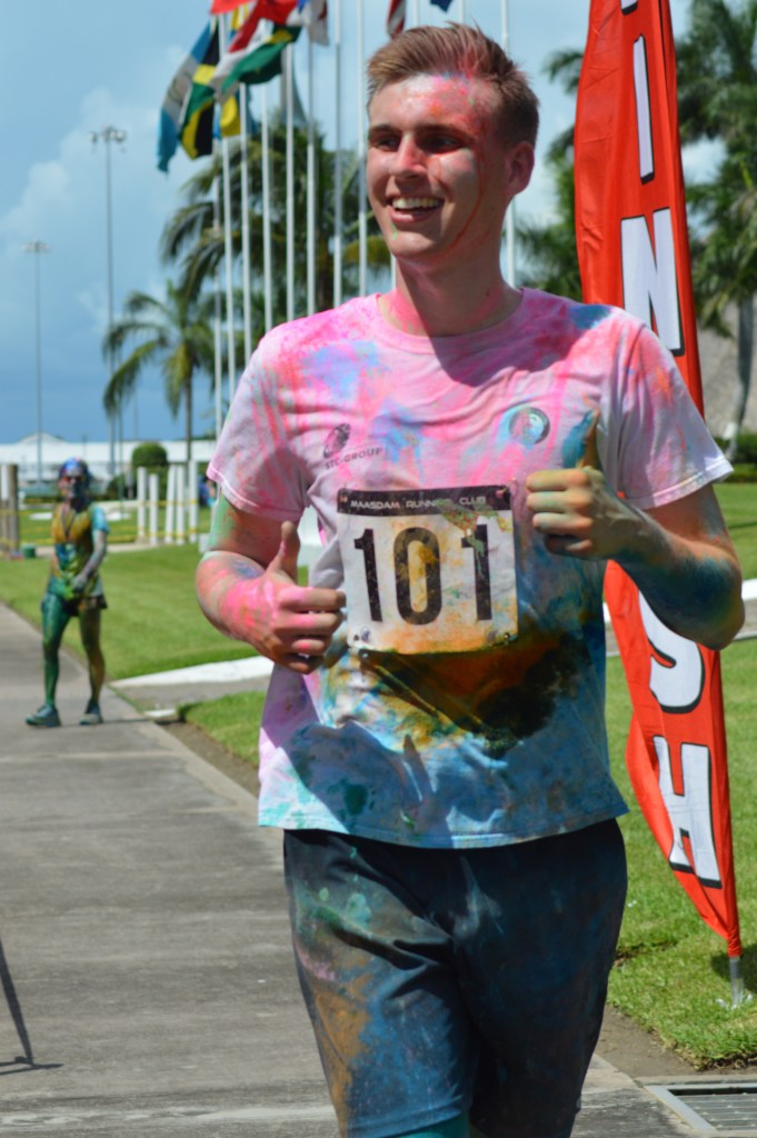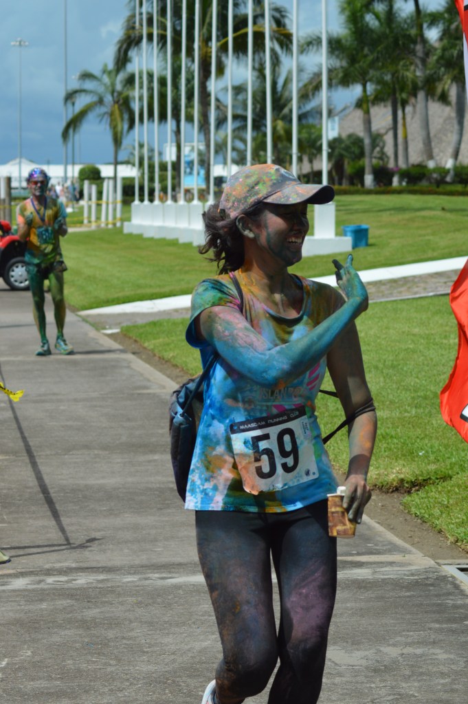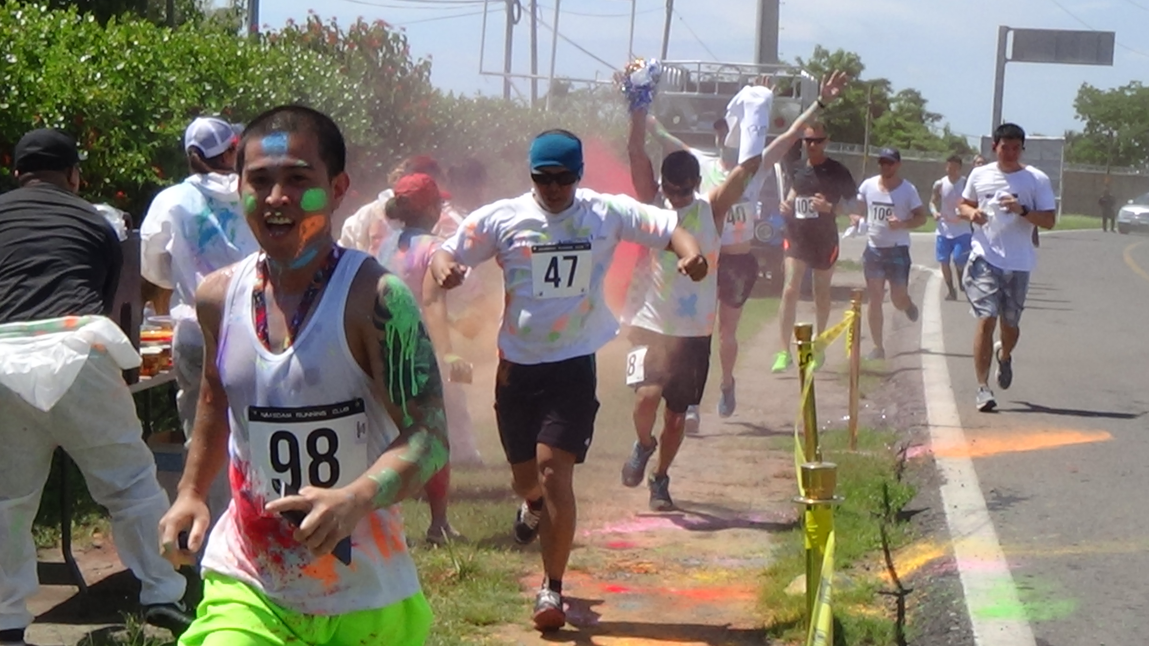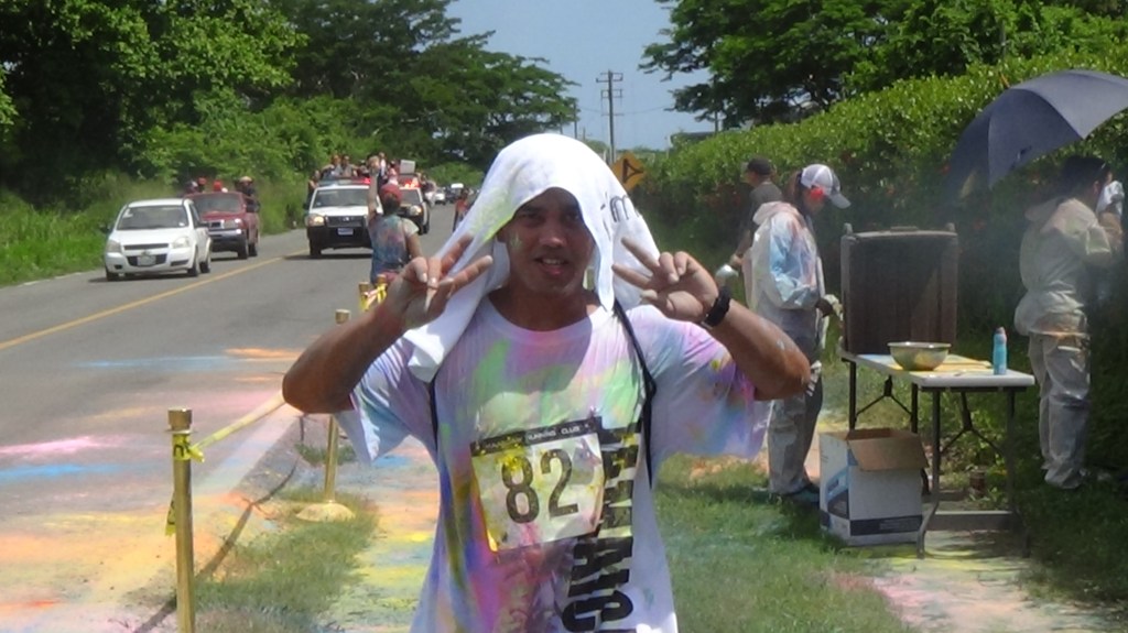 at 10:00 am the crew got underway. The course was 2.5k up and 2.5k down run and with 3 powder stations, the crew went through these stations 6 times….You can imagine the amount of color we went through. I literally had blue and green toes for 2 weeks…..Couldn’t get the stuff off my feet