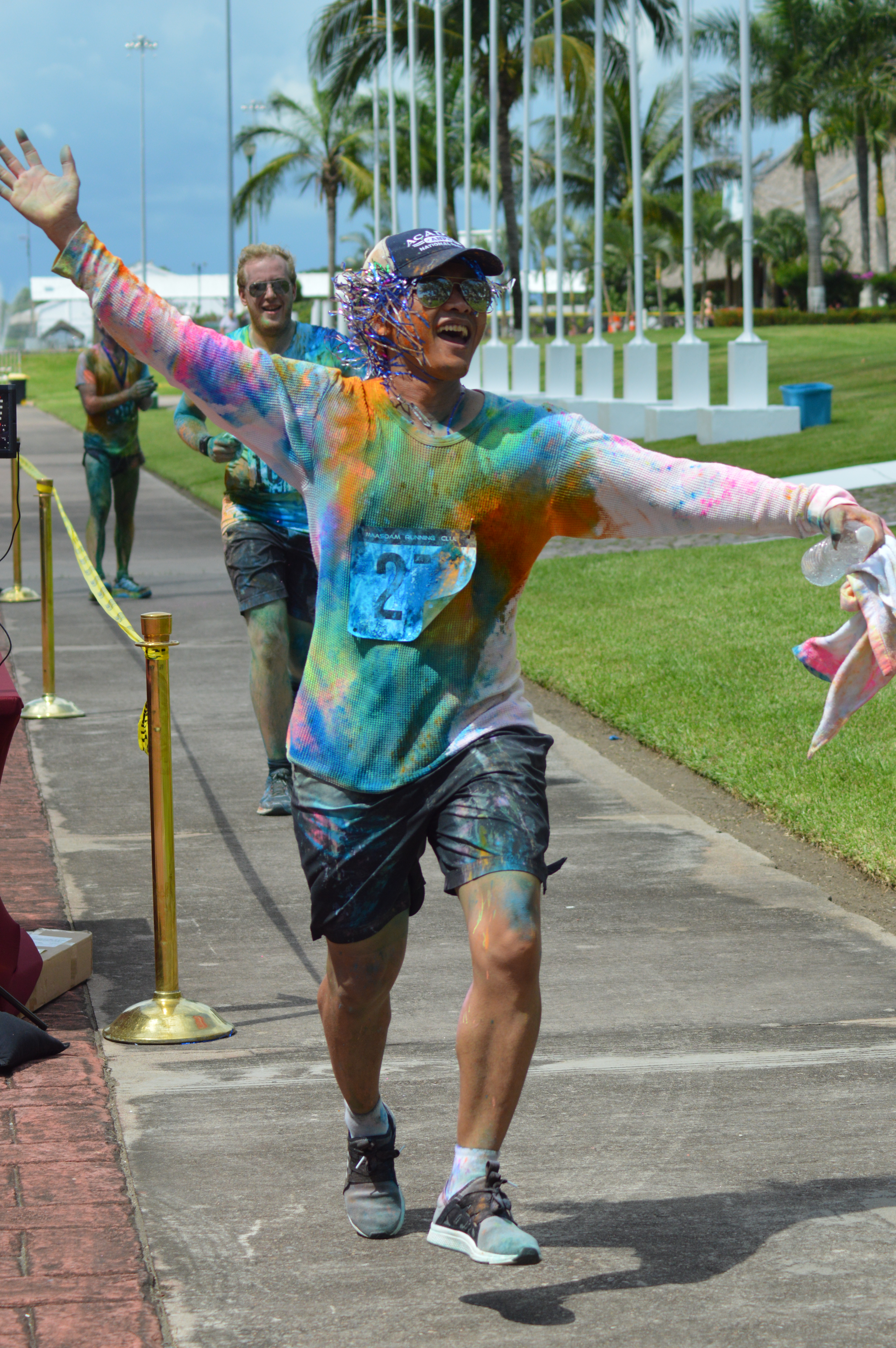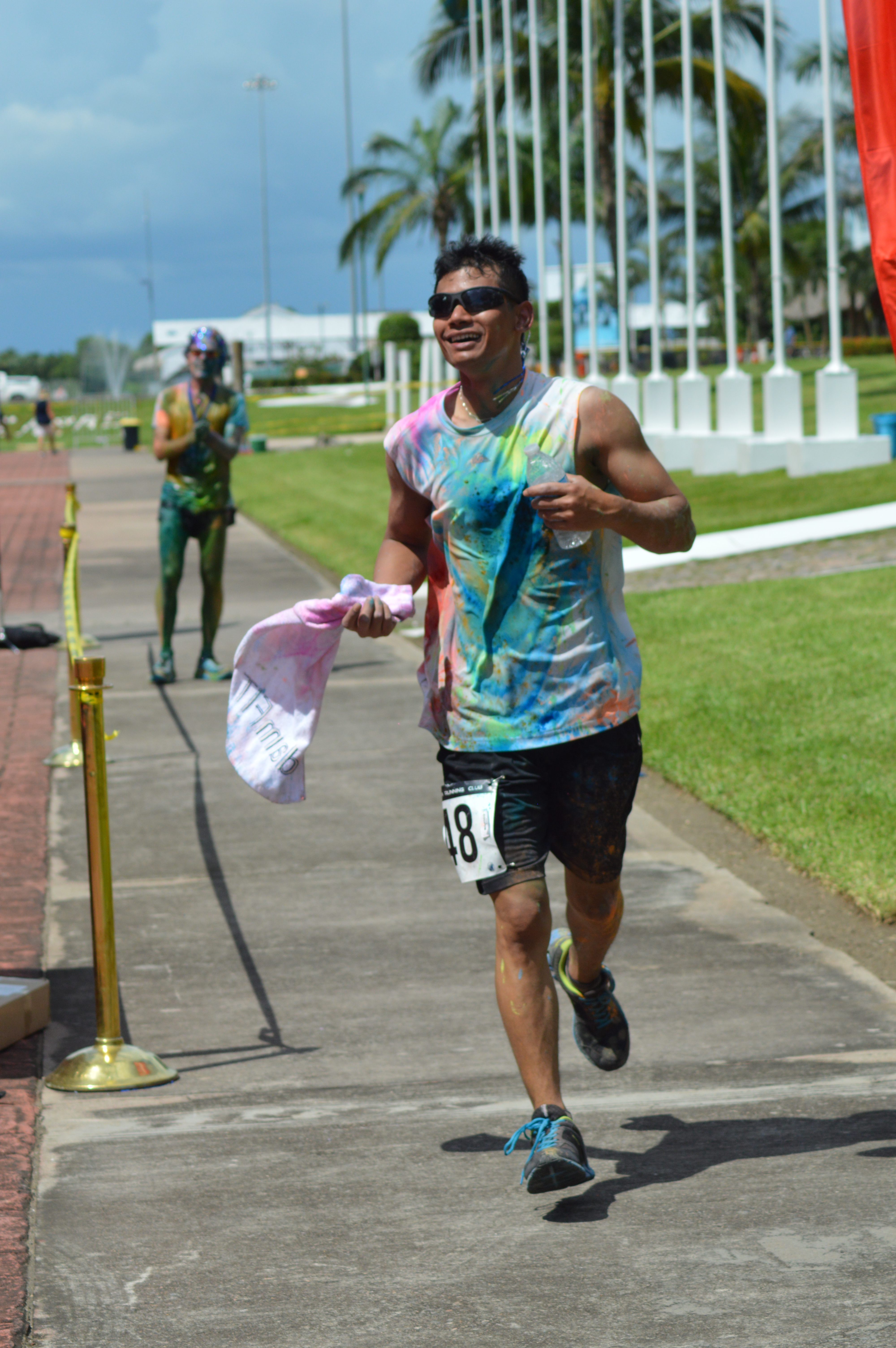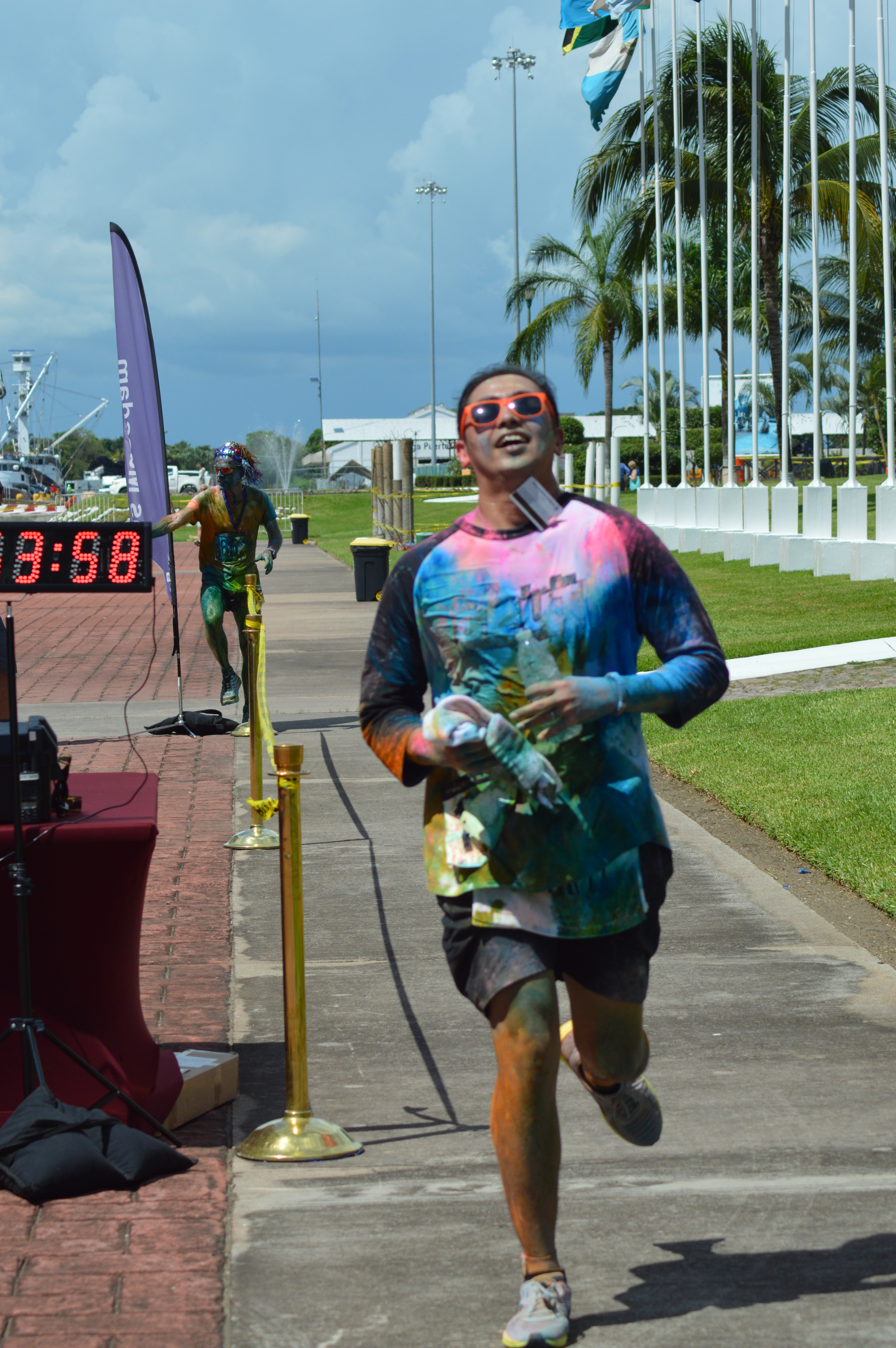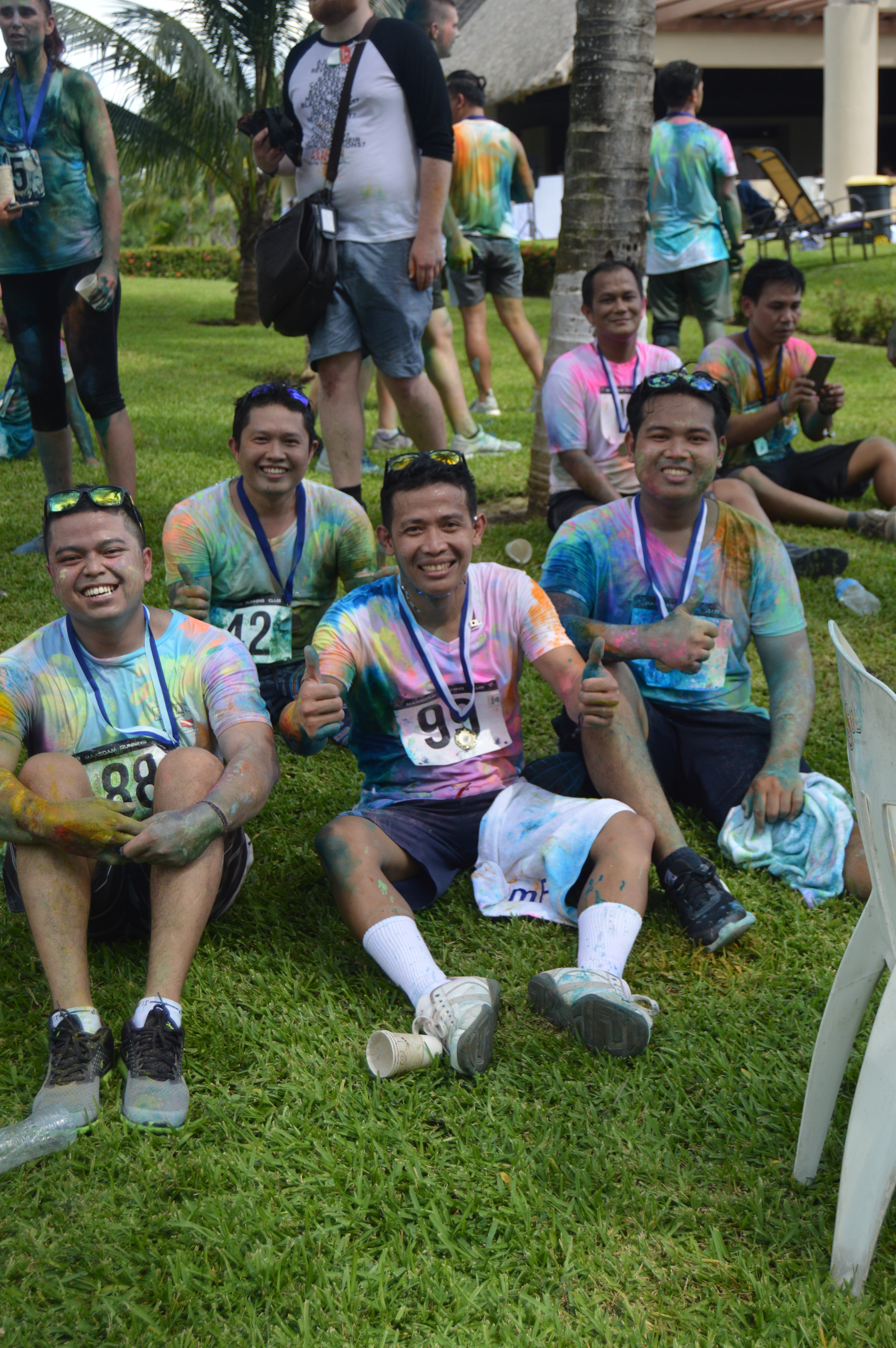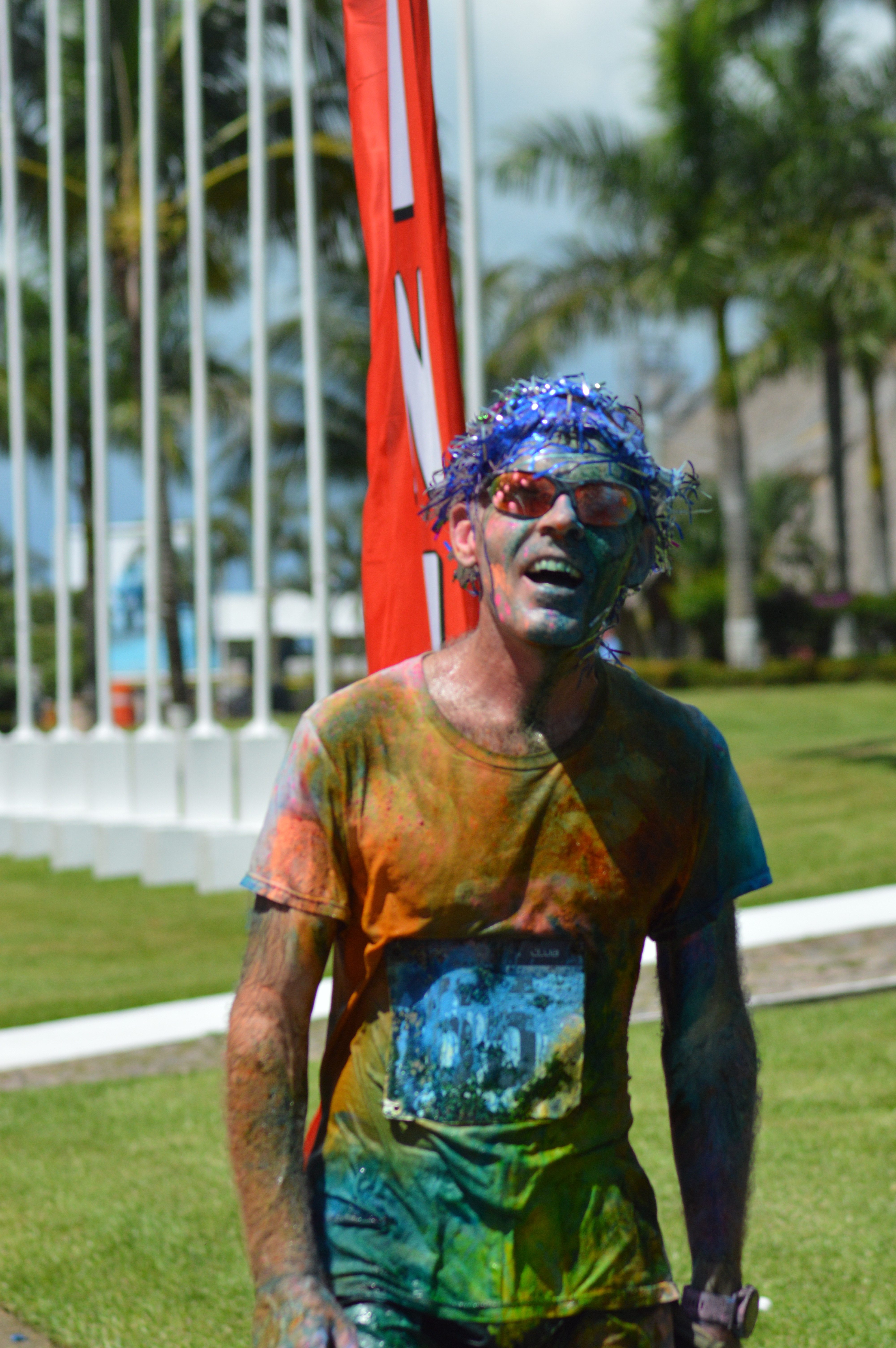 at 10:00 am the crew got underway. The course was 2.5k up and 2.5k down run and with 3 powder stations, the crew went through these stations 6 times….You can imagine the amount of color we went through. I literally had blue and green toes for 2 weeks…..Couldn’t get the stuff off my feet