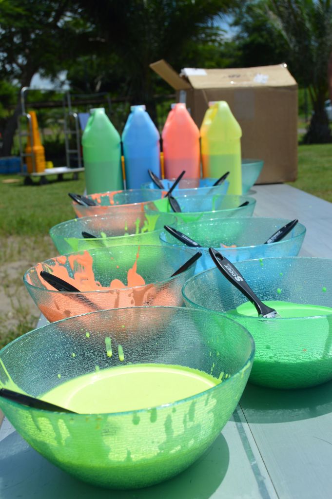 Besides the colored powder, we also added some soy-bean based finger paint to let the crew get creative