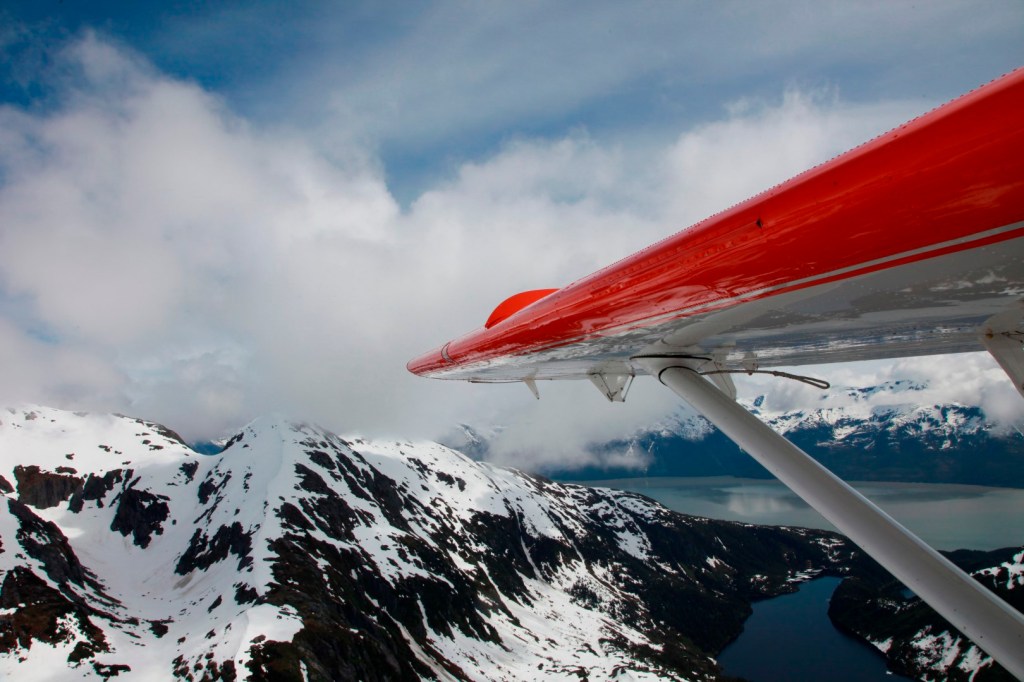 You can take an excursion where you take a floatplane and fly over several glacier after which you land next to the lodge with a beautiful panoramic view on Taku Glacier.