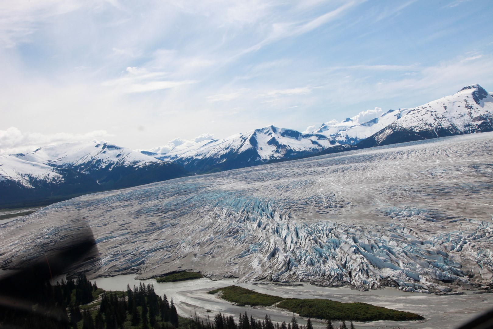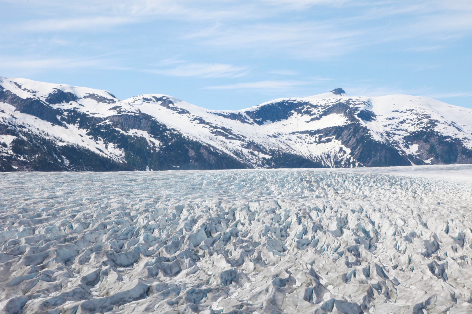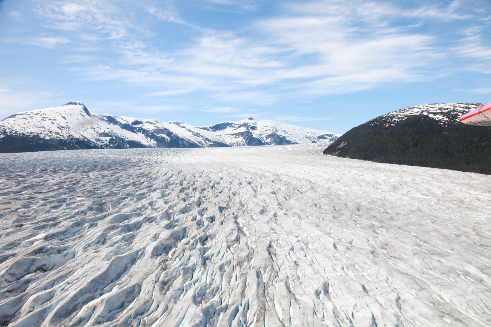 You can take an excursion where you take a floatplane and fly over several glacier after which you land next to the lodge with a beautiful panoramic view on Taku Glacier.