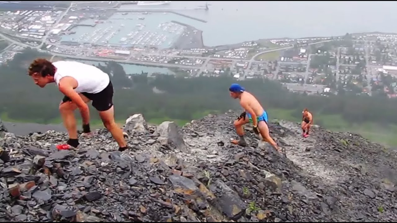 now, there are a few ways go get to the summit; you can take the actual trailhead, which is really doable for the average hiker, or, you can do it mountain goat style like these extreme runner do at the 4th of July Mount Marathon race.