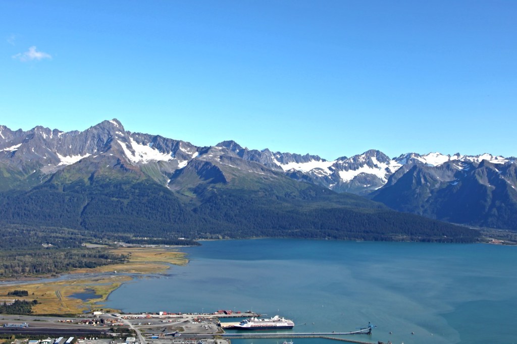 and running down, you have a fantastic view over the Seward greater area including the ship