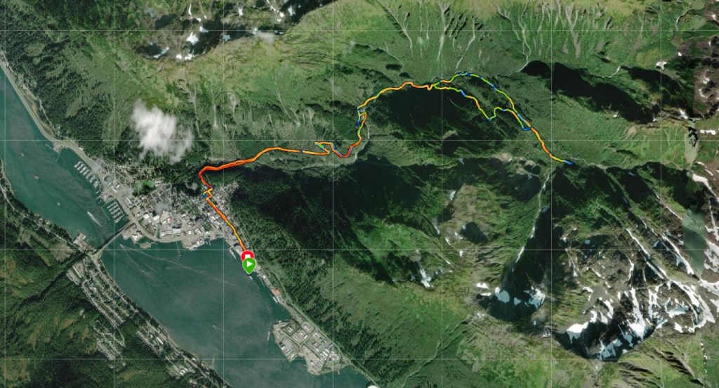What I always do is run to the end, or as far as you can get in this time of the year, as there is still a lot of snow going up higher, than turn around and take Red Mill Trail back to the ship. What an amazing trails…Ended up going so high that I ran in the snow, drank water from the waterfall, washed my face with glacial water and threw snowballs…..
