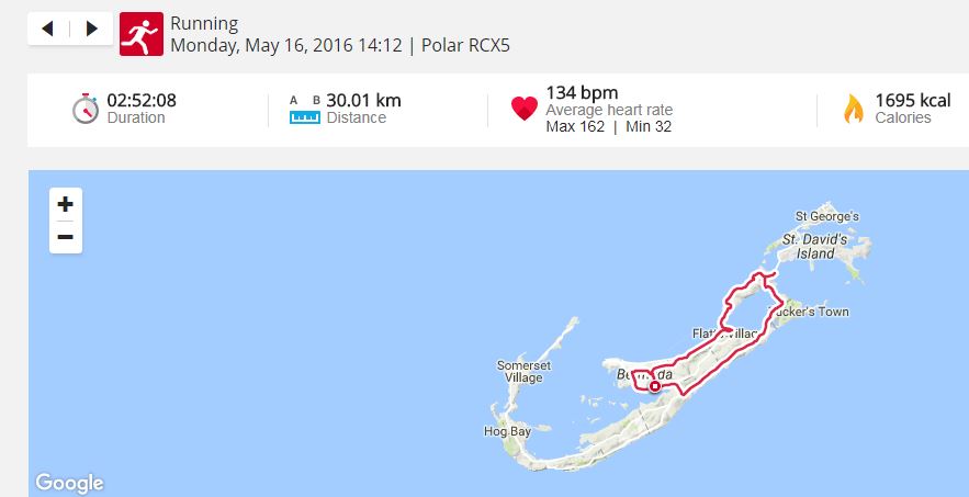 the week before the run, we also happened to be there….I ran a 30km or 19 miler on the other side of the island, also very nice to run, since you run through Hamilton and you pass the famous pink sandy beach