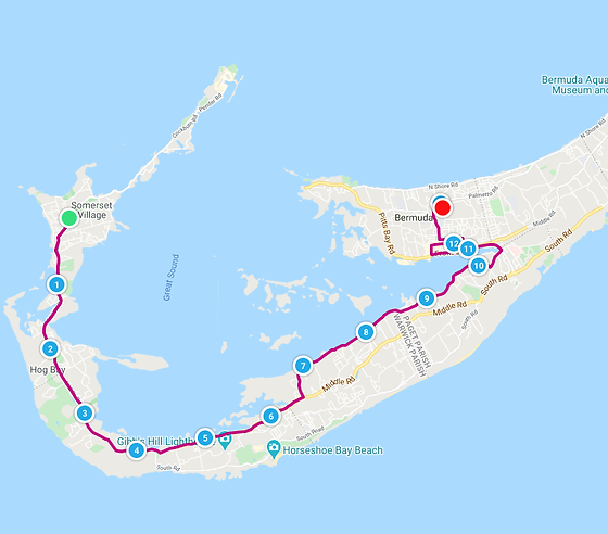 The start is at Somerset village and in order to get there, we needed to take a water shuttle from the dock in Hamilton across the bay. Very convenient for us, since the ferry leaves next to our ship.