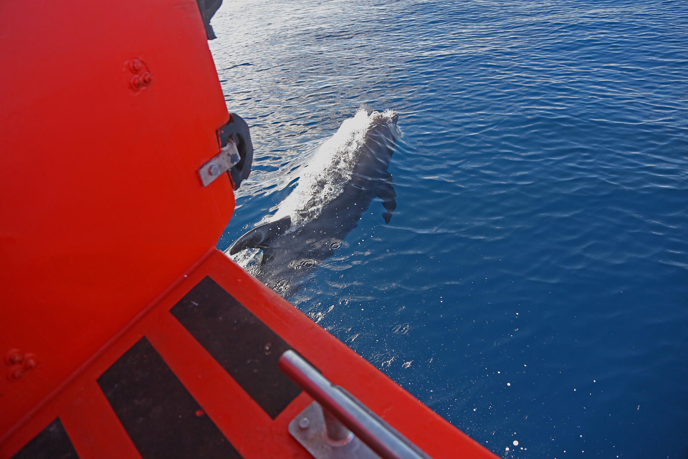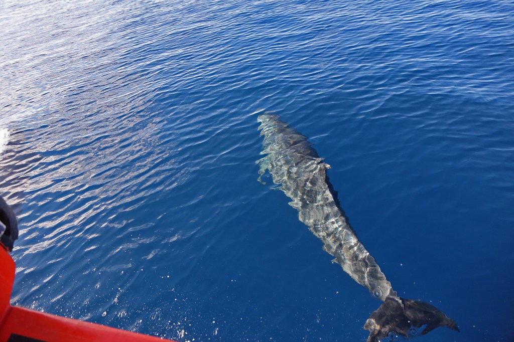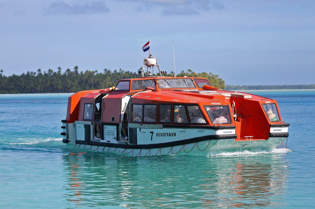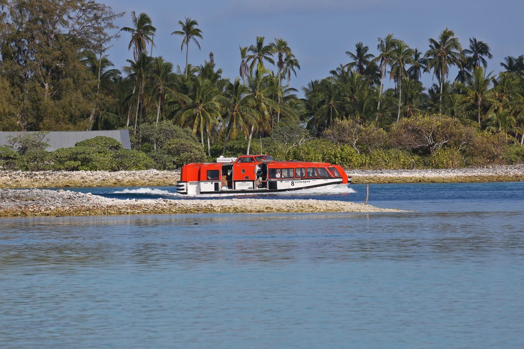 There is no option to dock in Fanning island and that’s why we drop anchor outside of the atoll. From there, we take the ship’s tenders to bring people ashore. I was on the first tender as I wanted to assess the pier situation. Look at this, as soon as we set course to the island, we got escort by a group of dolphins…