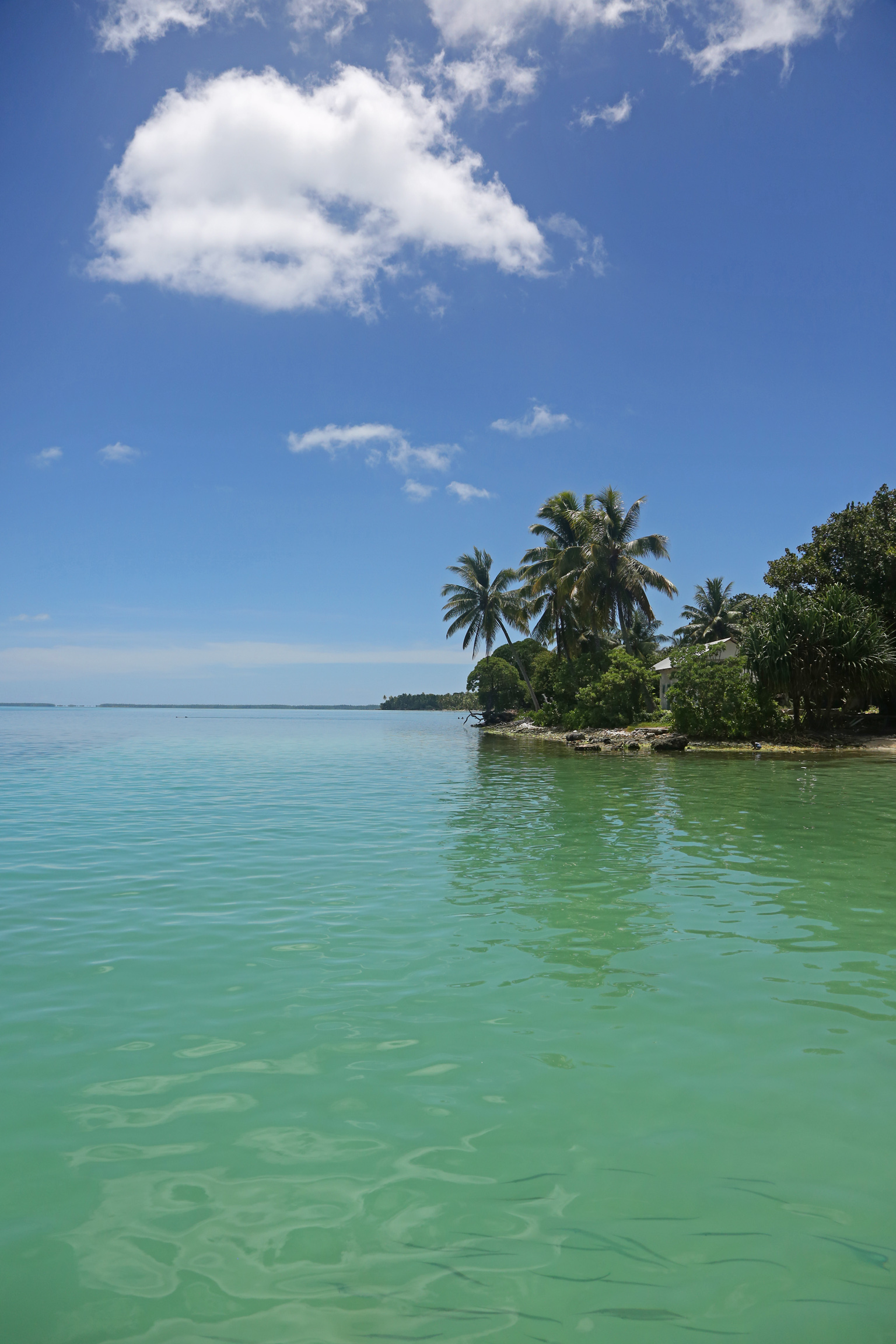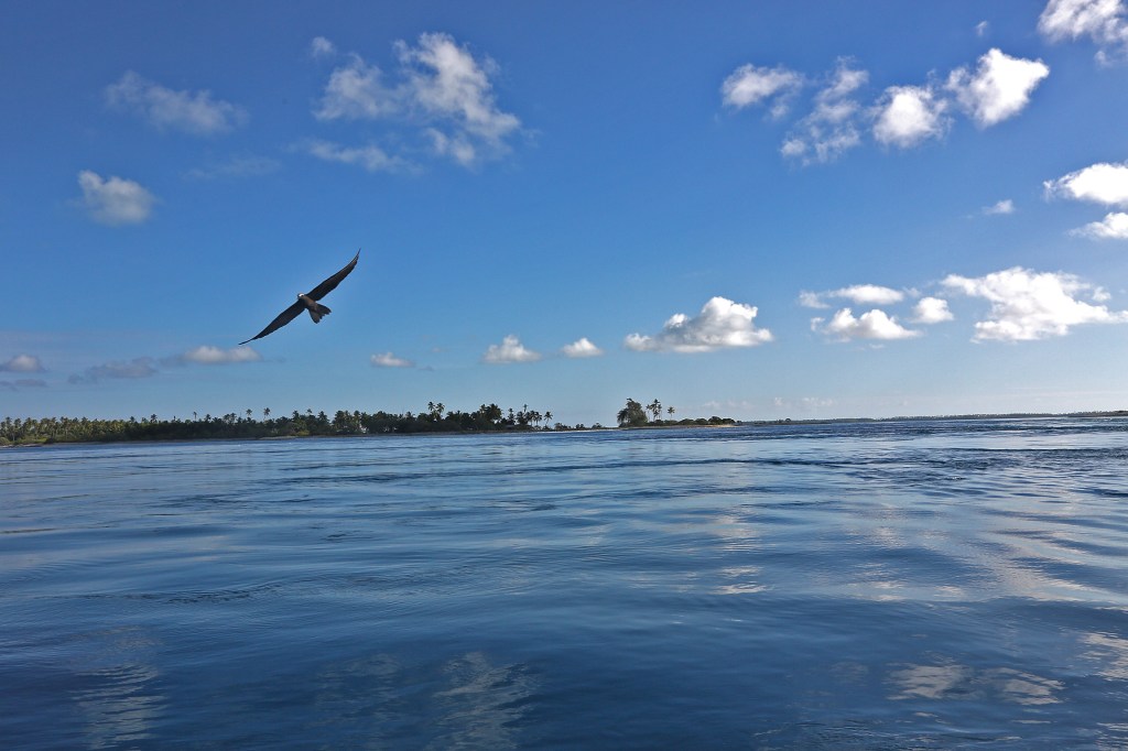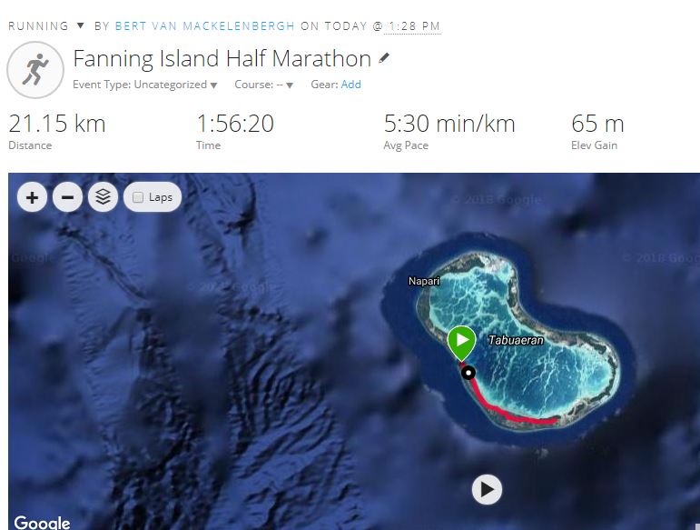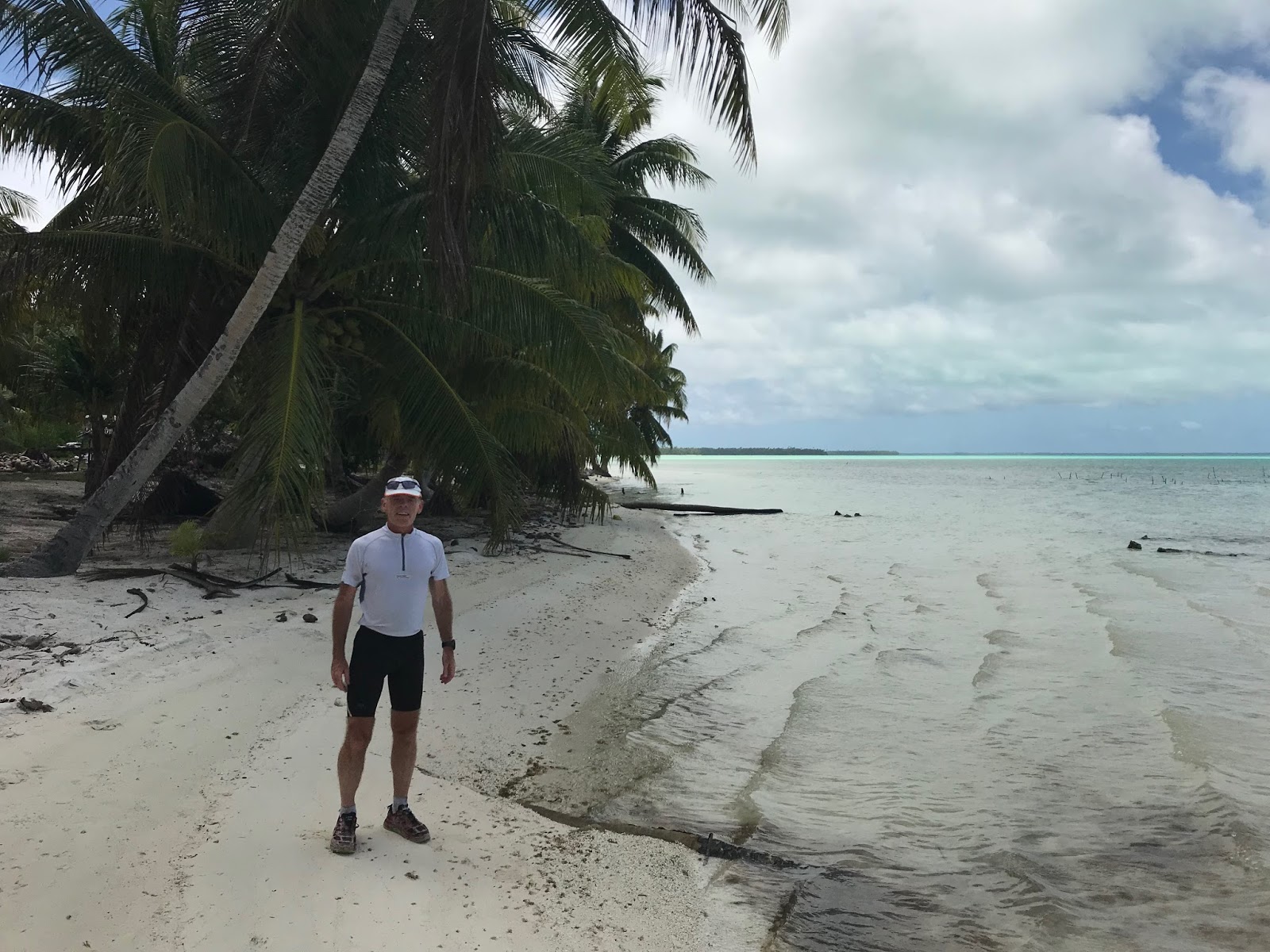 I did half a marathon and that’s as far as I could run till I reached a big opening where the currant is too strong. I did some water crossings but those were only knee-deep openings in the atoll. The people are great, all 1000 of them.