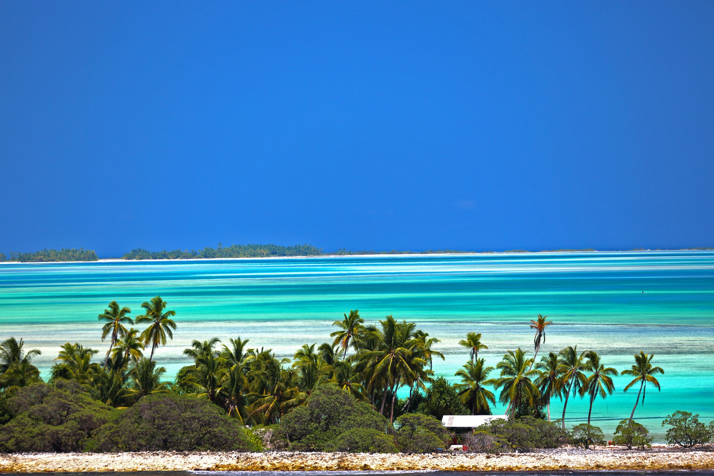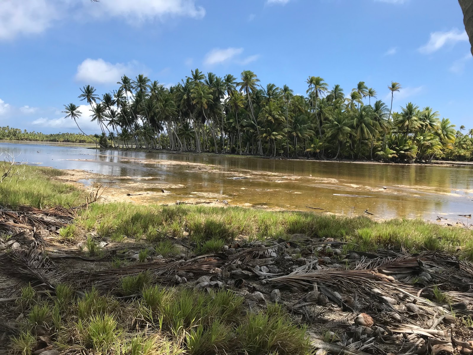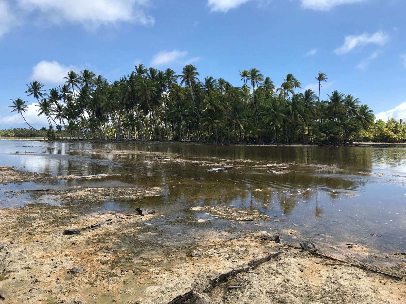 I did half a marathon and that’s as far as I could run till I reached a big opening where the currant is too strong. I did some water crossings but those were only knee-deep openings in the atoll. The people are great, all 1000 of them.