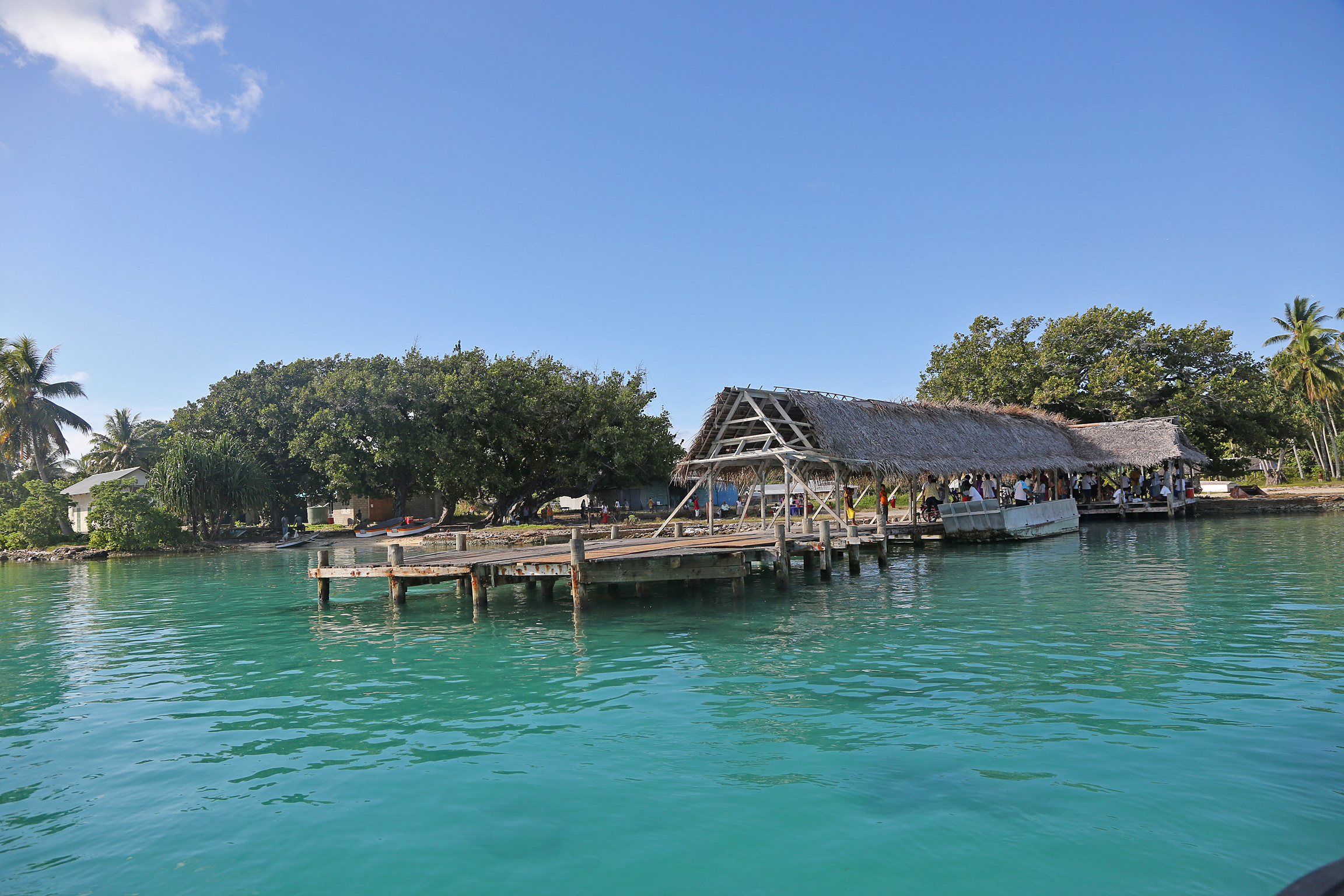 But, we made the decision that the state of the pier was good enough. Granted, it is not a super good looking AC-climatized pier but, you need to keep in mind that you are in another world when travelling to these parts of the world. These areas are primitive and you should be open minded when travelling here. Once we gave the go-ahead, the community of Fanning island came to welcome us.