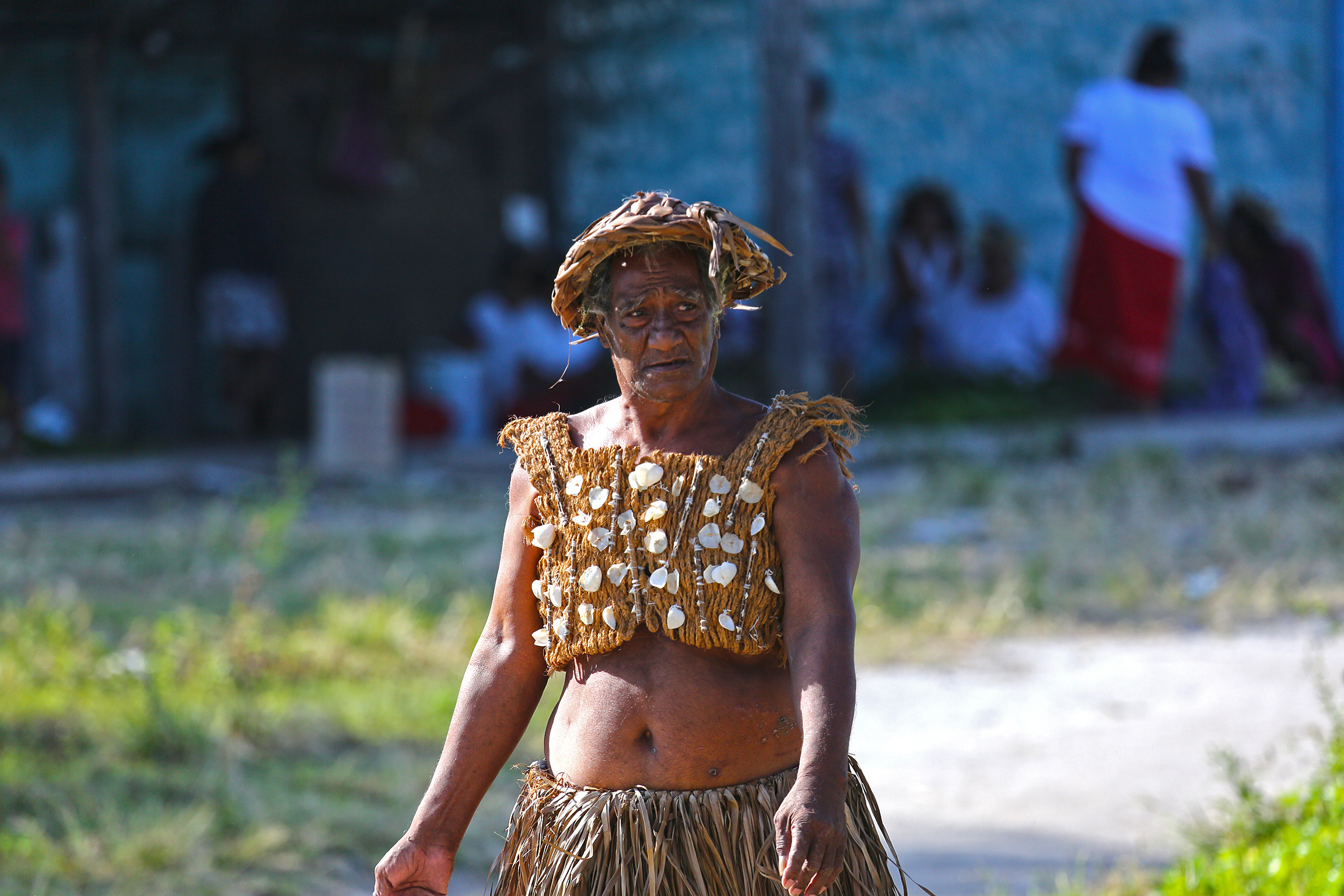 A handsome, brown-skinned people, they are polite, gentle and shy. They live in grass shacks, or, more accurately, shacks of coconut fronds and pandanus leaves. The traditional dress, for men and women, is a sarong. They live off the land and the sea: fish, coconuts, taro, pumpkin and papaya. They have no telephones, no running water, no electricity (and by extension, no computers, no television, no video games, no movies).