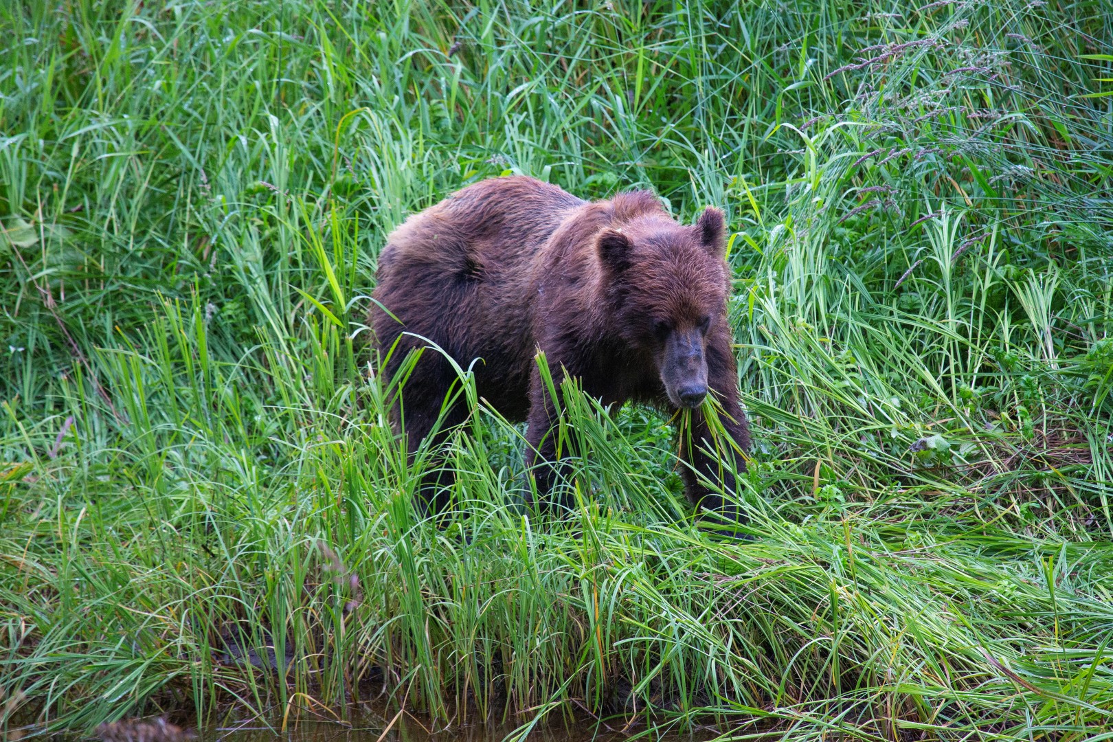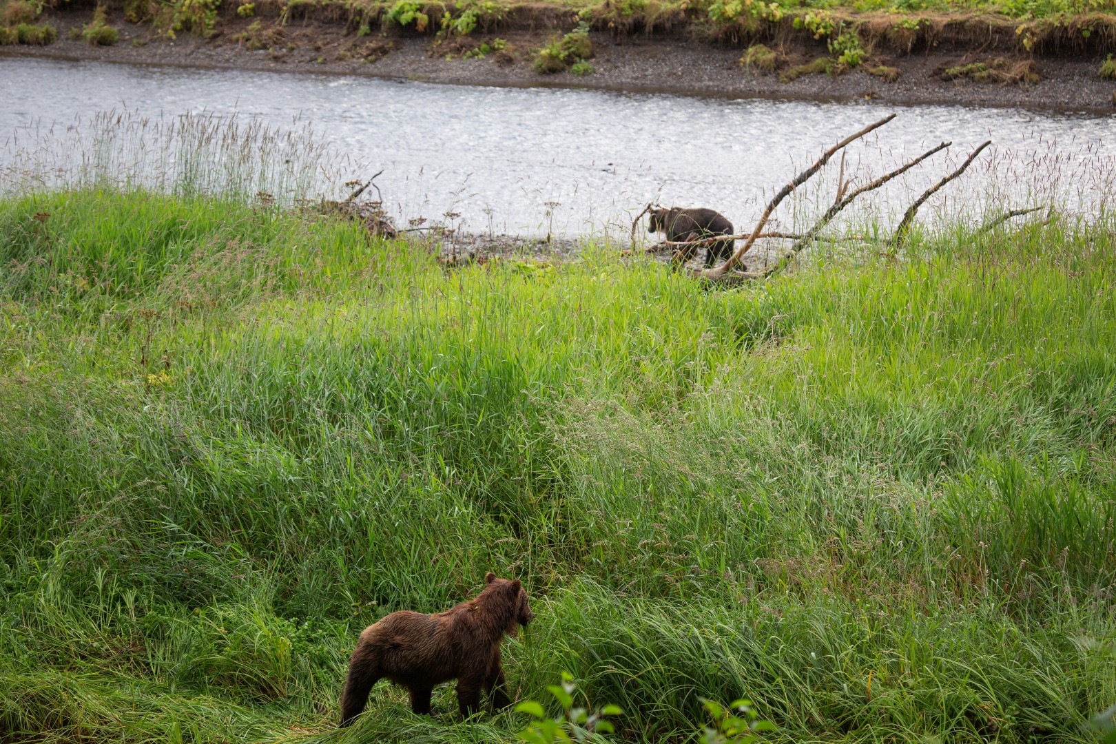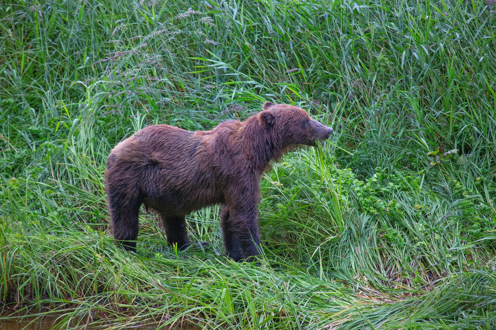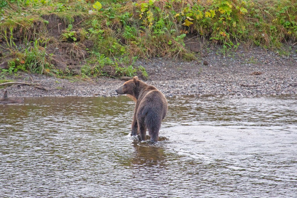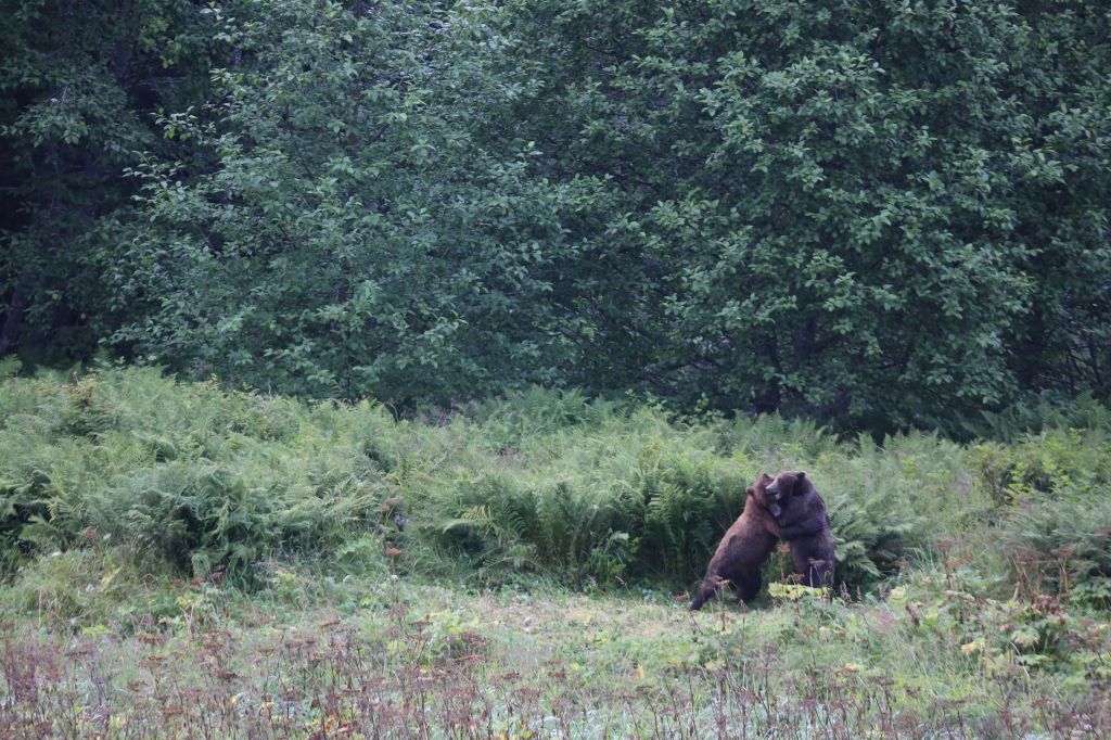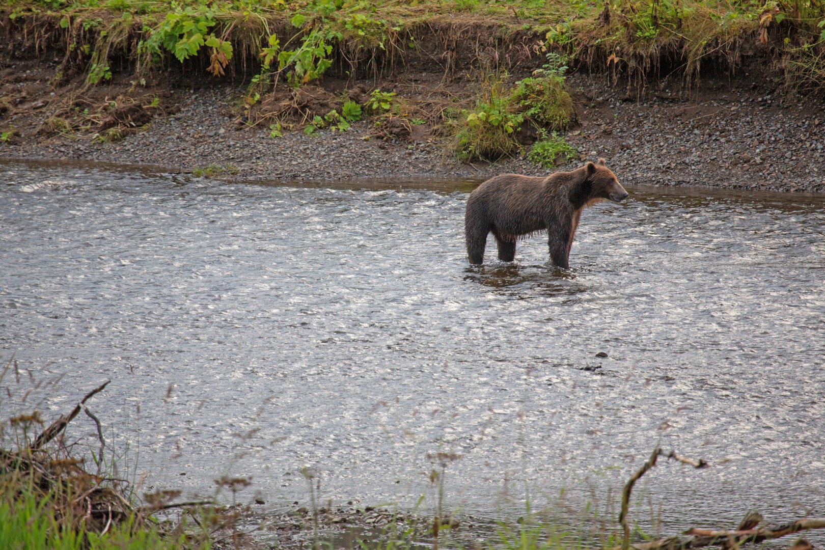 Hoonah is a largely Tlingit community on Chichagof Island, located in Alaska’s panhandle in the southeast region of the state. From the ship’s terminal in Icy Strait Point to the town on Hoonah is only a 2 mile walk and the town is small; it takes me 5 minutes to run from one side to the other side of the village. Once you are away from the village boundaries, changes are big to see bears. Yesterday we took a car, since we didn’t have much time, and drove for about 20 minutes till we saw the first bears. They were playing, catching fish, eating grass and what other things bears do. What an amazing evening to see these creatures in their original habitat.