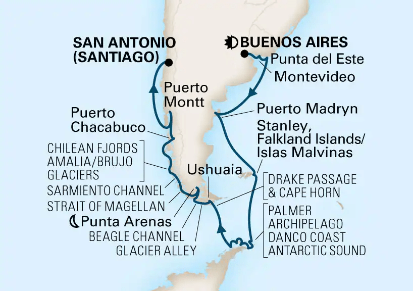 Antarctica, the southernmost continent and site of the South Pole, is a virtually uninhabited, ice-covered landmass. Most cruises to the continent visit the Antarctic Peninsula, which stretches toward South America. It’s known for the Lemaire Channel and Paradise Harbor, striking, iceberg-flanked passageways, and Port Lockroy, a former British research station turned museum. The peninsula’s isolated terrain also shelters rich wildlife, including many penguins.