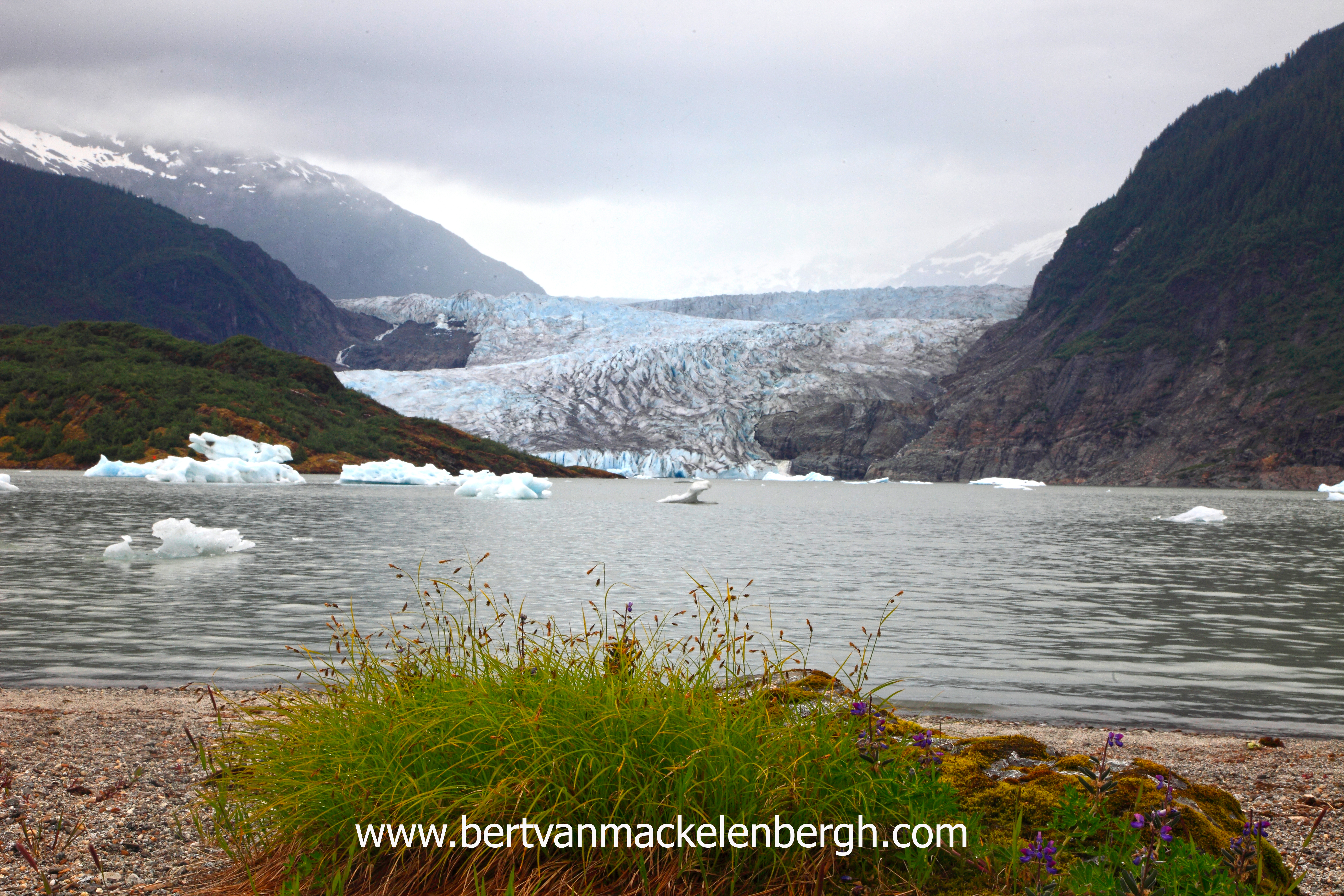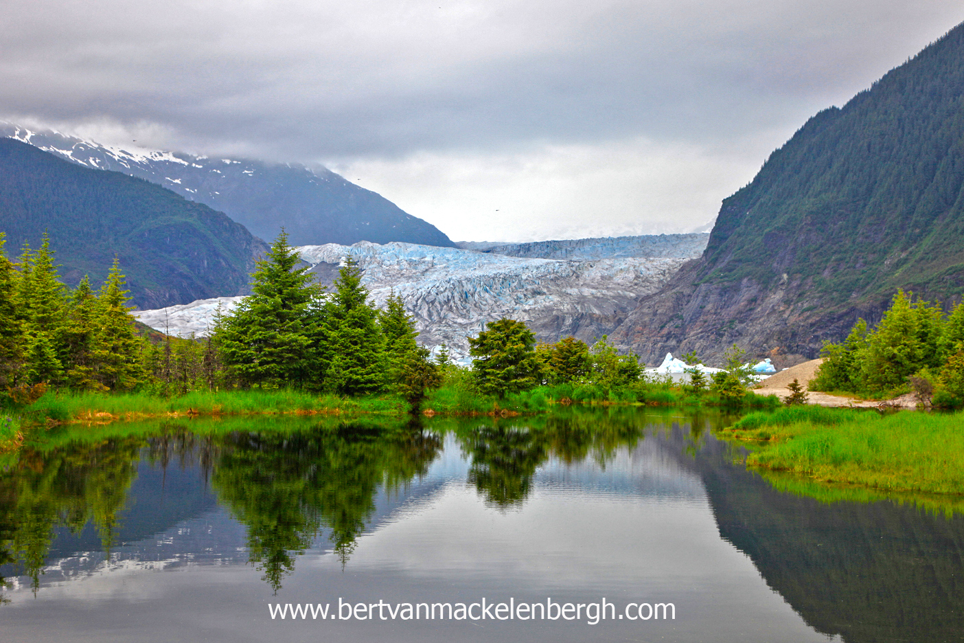 Approximately 13 miles from downtown Juneau and located between the mountains is Mendenhall Glacier. Several tours are available to this glacier where you can enjoy views of the thirteen-mile-long river of ice, which terminates on the far side of Mendenhall Lake, and watch blue icebergs floating in the water amidst reflections of southeast Alaska’s coast mountains. The Mendenhall Glacier is one of many major glaciers that connect to the vast Juneau Ice Field, a 1,500 square mile remnant of the last ice age, cradled high in the coast mountain’s lofty peaks.