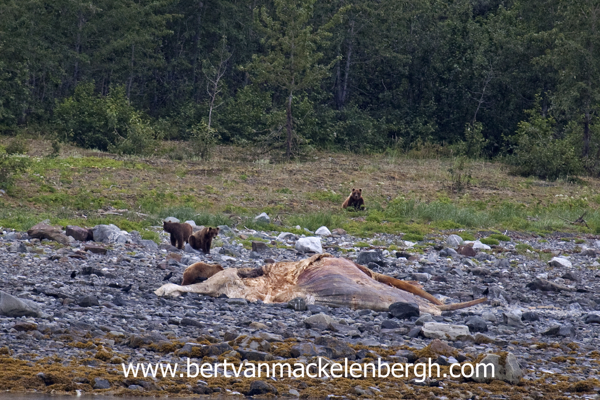 A few years, when we sailed in Glacier Bay, we noticed a dead whale on the beach. Whether it was old and died a natural cause, or something else, we don’t know. The week after we passed it again, we saw a bunch of bears having the meal of their life and throughout the summer, this whale was a source for a lot of bears and wolves, as I was able to capture both. At the end of the summer, there was not much left and the inside was complete eaten, so much, that the bears even walked inside the whale. It sounds cruel, but this was nature at it’s best. It was definitely very intriguing seeing the whale getting smaller by the week.