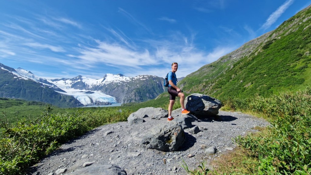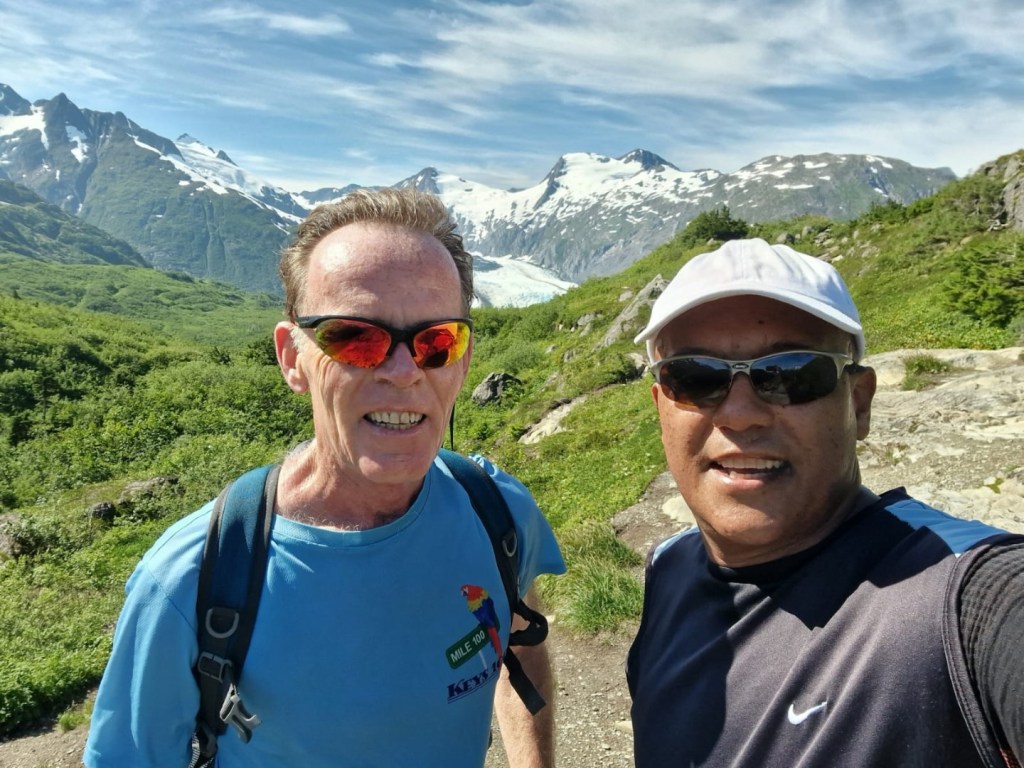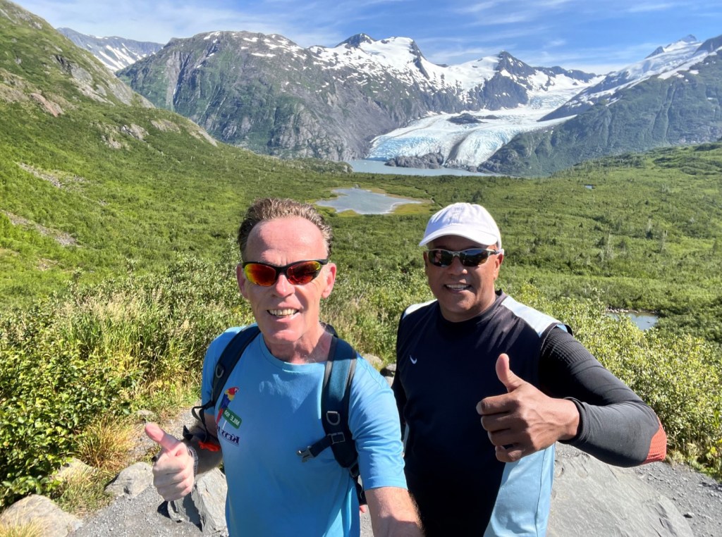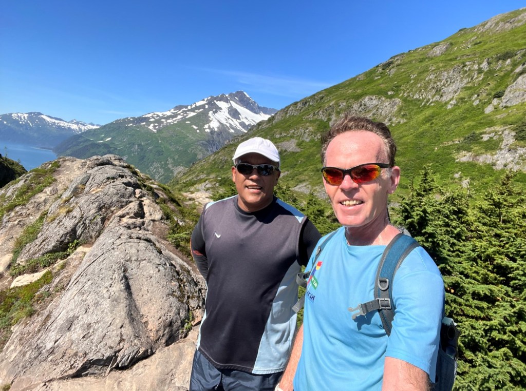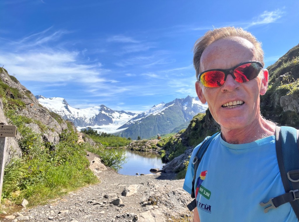 After weeks of rain and cold, miserable weather, we finally have a full week of sun. And thus a good opportunity to get some mileage in. Today, one of my colleagues and me ran from the ship to Portage Glacier, or actually, to the overlook point. Phenomenal views up there, in every direction.