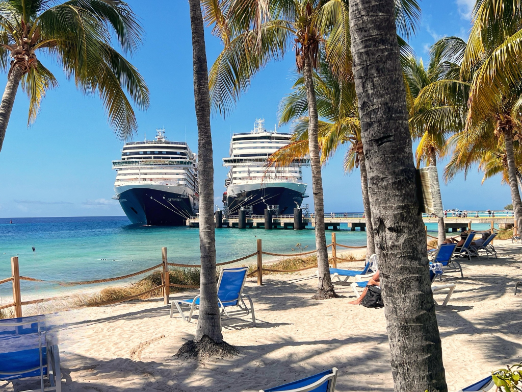 The ships dock right at the nicest beach of the island and therefore….relax. As you can see, two of our Holland America Line vessels docked side by side in Grand Turk.