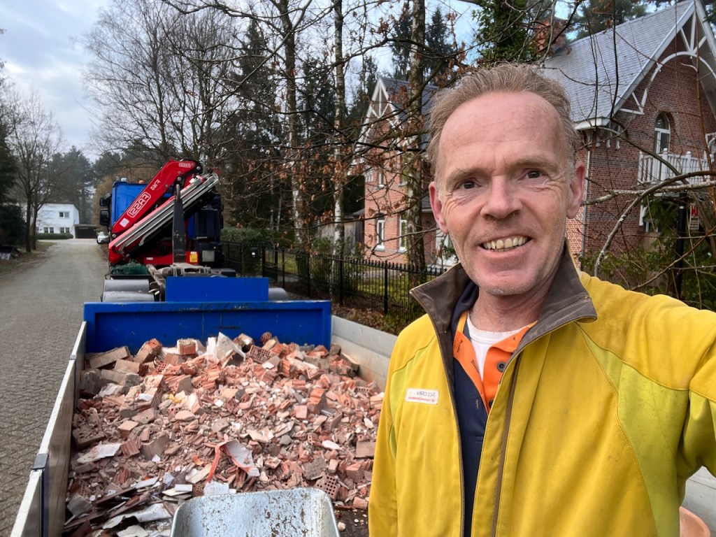 What a busy day today, as we are taking down a bearing wall. This is the wall between the kitchen and the living room. The kitchen was so small and completely useless. I want to break down this wall to make an open kitchen to the living room. In order to do this, I had to hire a company to place to steal studs. Ultimately I will cover this beam with a wooden box where I will build in some lights. But that’s for later. For now, it’s going up and down with wheelbarrows full of stone 🙂