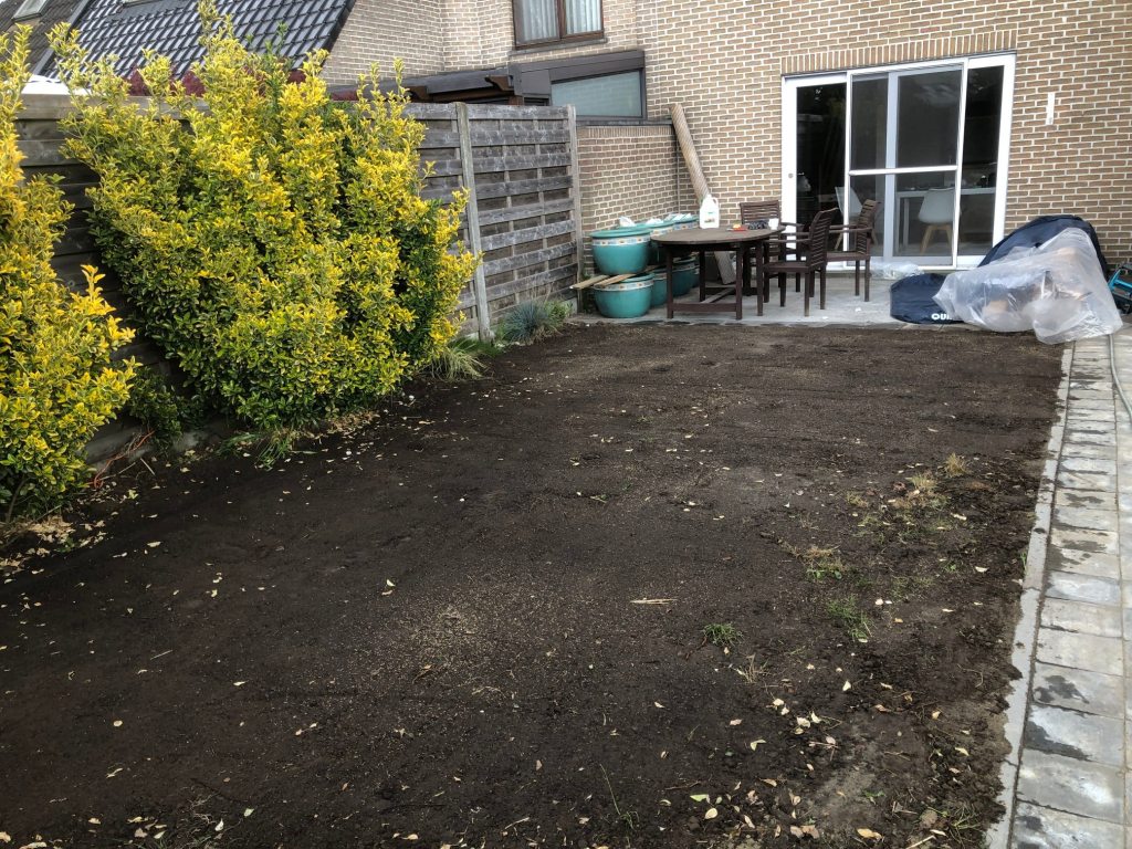 than I removed the soil, leveled it out and planted new grass