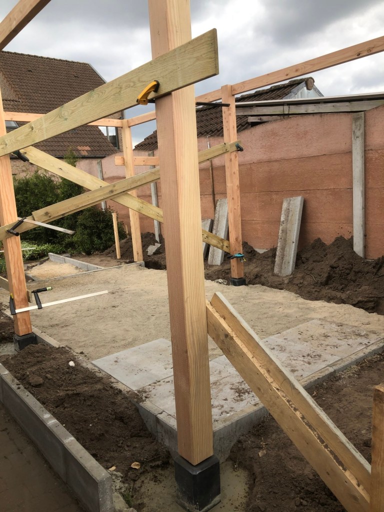 After that was done, I had to start digging in the poles for the wooden structure
