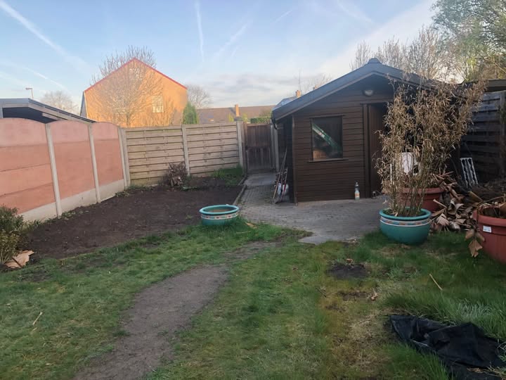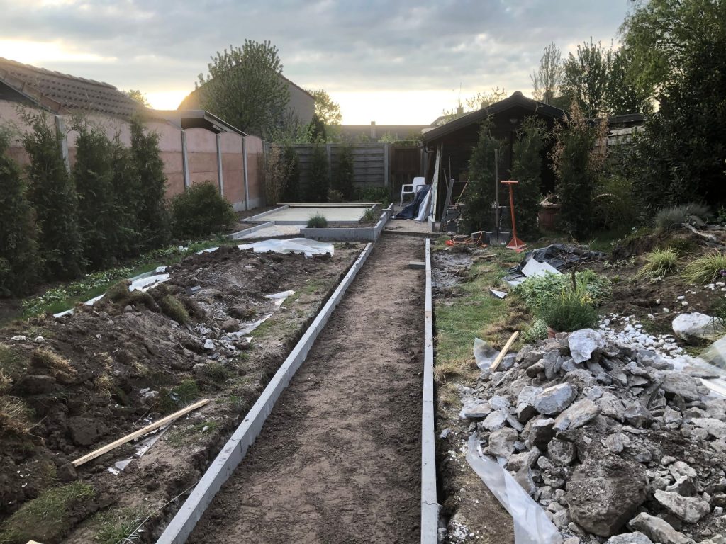 So, time for a makeover. I decided to make a path in the middle of the garden, than remove the entire lawn as it was so uneven, level it and start all over again with new grass seeds.