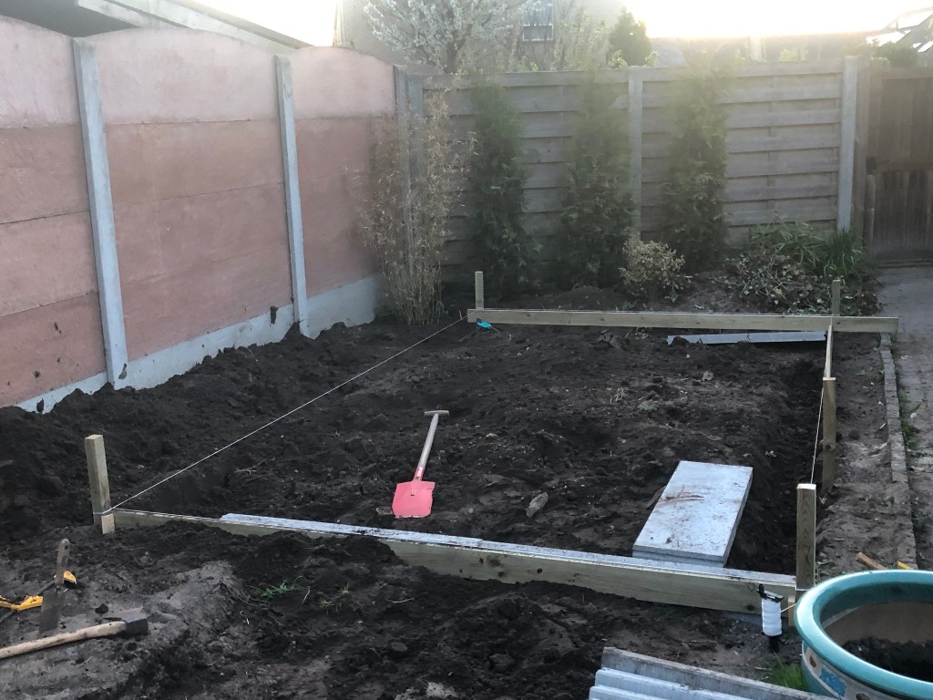The first thing I did was digging out the top soil for the new patio