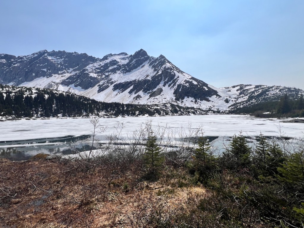 As you can see, the lake is still pretty much frozen – it will take another two months before all the snow and ice are melted.