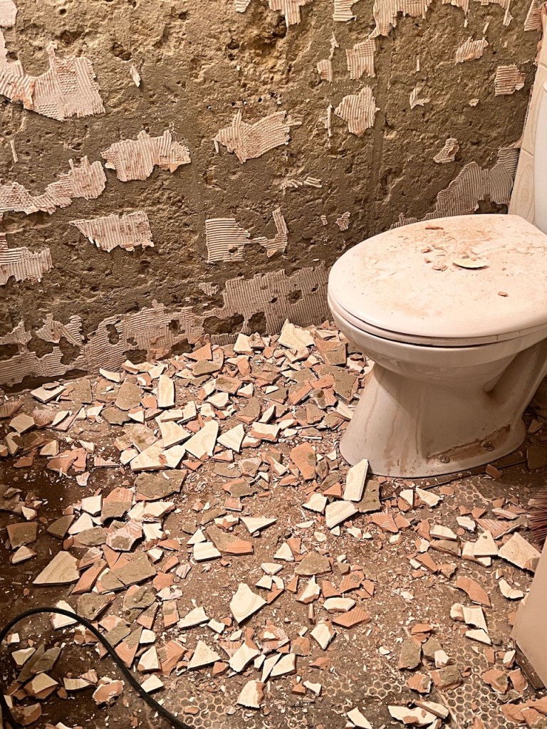 Old tiles, everything so outdated that I decided to strip the toilet and start from scratch