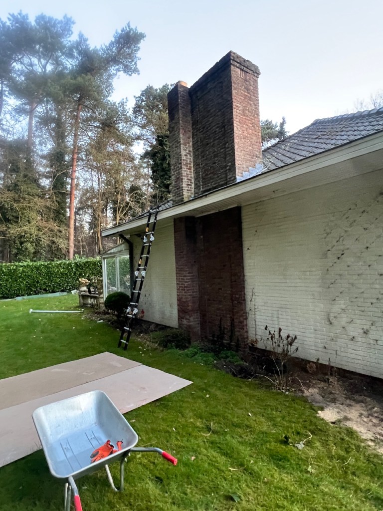 as you can see, the chimney is gone. Now we need to close the roof by addind support beams and roof tiles